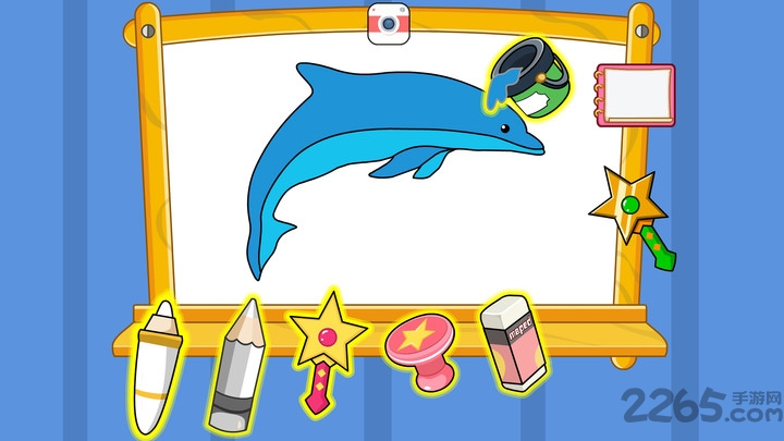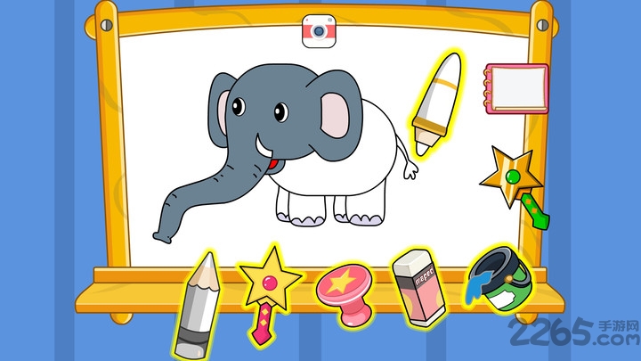 1.多种笔刷工具包括铅笔、蜡笔,其他工具有自动填色魔法棒、印章、橡皮擦、油漆桶和动画魔法棒,给图形上色后点击动画魔法棒可以播放作品。