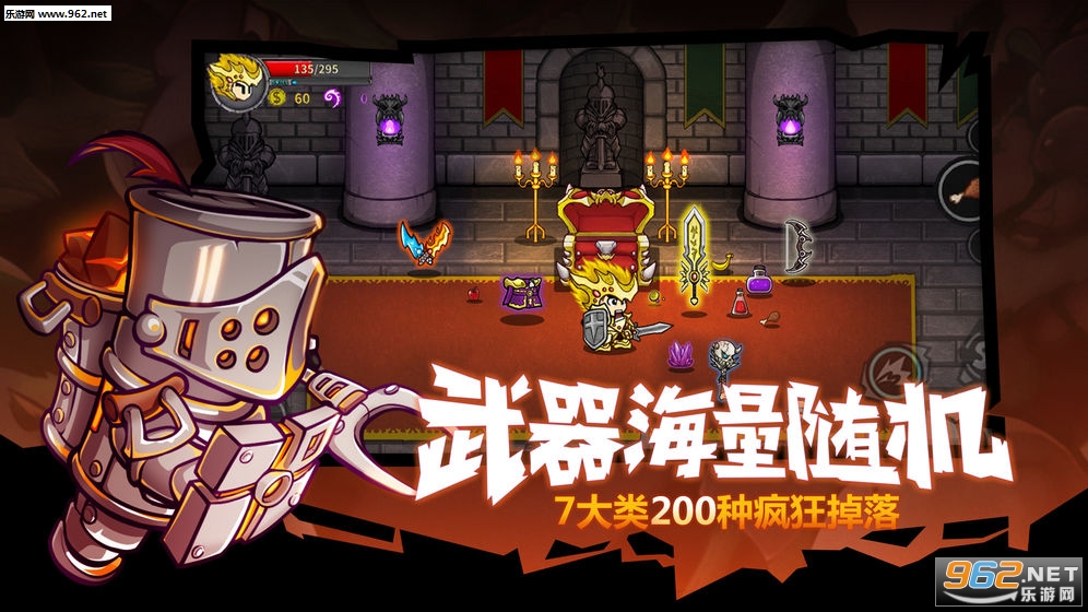 适中的打击感+易上手的操作模式+“稍稍有点难”的挑战难度,“横版动作闯关”这种熟悉的玩法将唤醒手指最初的躁动。大量的Roguelike元素,让所有关卡、怪物、道具都随机生成,运气也成了左右胜局的利器。