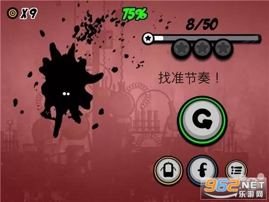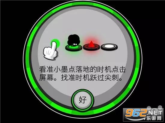 2、小墨点回来了!继续帮助你的小朋友,随着音乐的节奏点击,让它跳过锋利的刺,永不放弃!