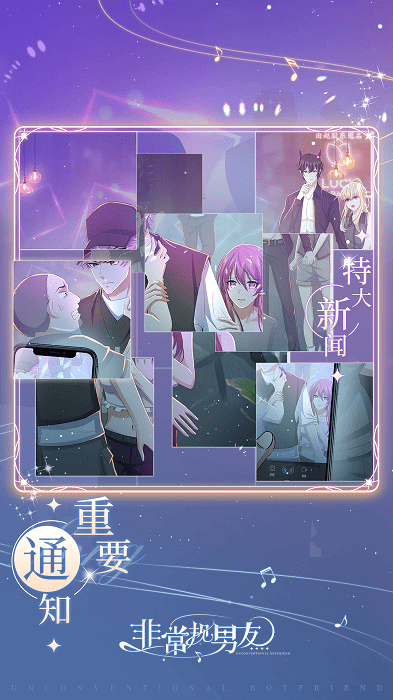 非常规男友是一个浪漫的恋爱选择游戏,在游戏里你可以体验甜甜的恋爱,当异世界的人们来到你的世界时,会发生什么?cv带入感极强。穿插着一些小的玩法,轻松易上手。