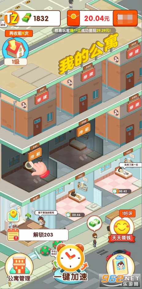 然后根据规则简单点击升级公寓也送红包的