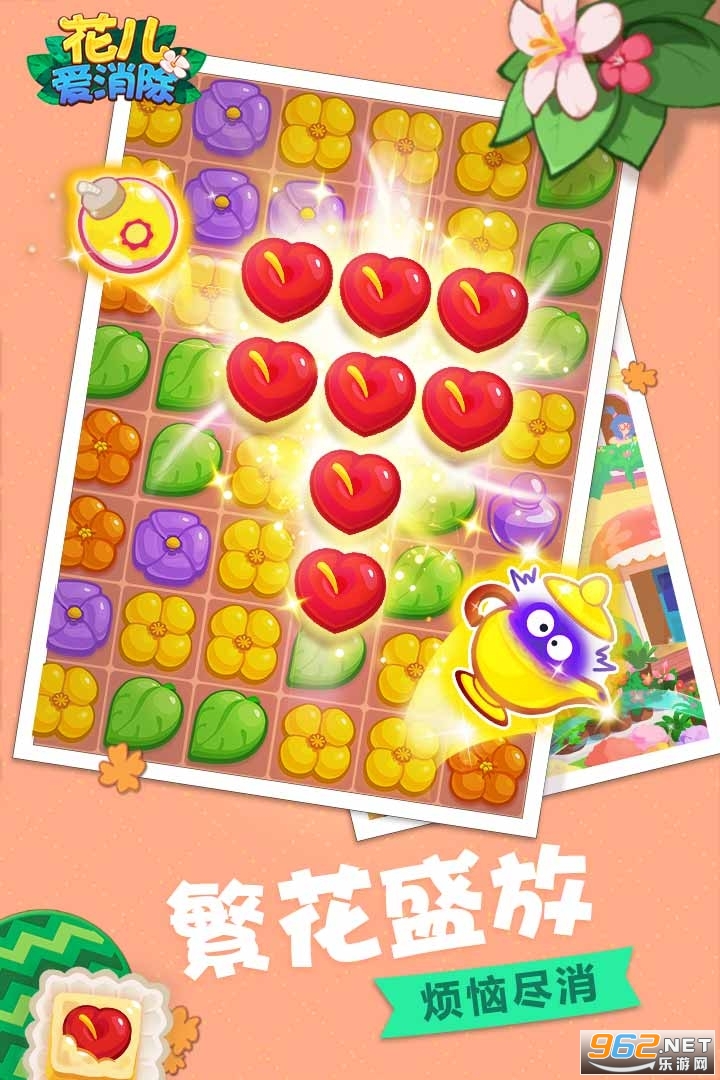 花儿爱消除游戏与传统的三消类游戏不同,只需2个以上的相同元素即可进行消除,各种不同的通关条件及功能道具,给予玩家更多的挑战和乐趣。