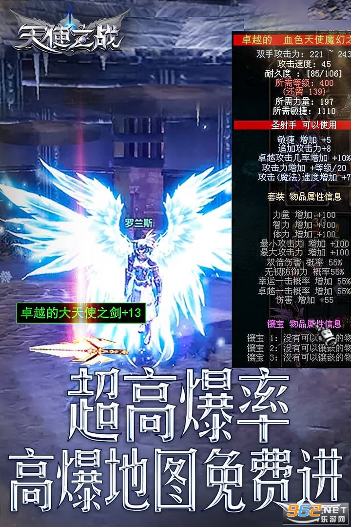 《天使之战》是一款多人在线角色扮演手游,游戏整体画面高度复刻经典,三大职业剑士、法师、弓手燃情回归,多样加点及培养塑造三职业不同的成长。所有地图场景高度还原,全地图野外自由探索,打宝BOSS获得稀有装备。 血色城堡、恶魔广场、狼魂要塞等经典玩法悉数登场,更有单人PK、组队团战、战盟攻城战、跨服竞技等多样PVP玩法,经典红名重现勇者大陆,燃情激战再续亚特天空。