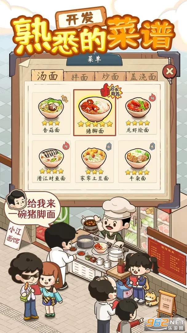 扮演面馆的店长,制作出各种每位面食,满足食客的需求。