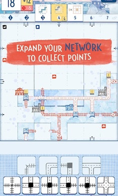 每一轮你都必须掷骰子并使用可用的路线来建立你的交通网络并连接尽可能多的出口。扩展您的网络以收集积分。您还将为最长的高速公路和铁路、在地图的中央空间中建造以及在它们到期之前完成可选的、与时间相关的目标获得奖励积分。
