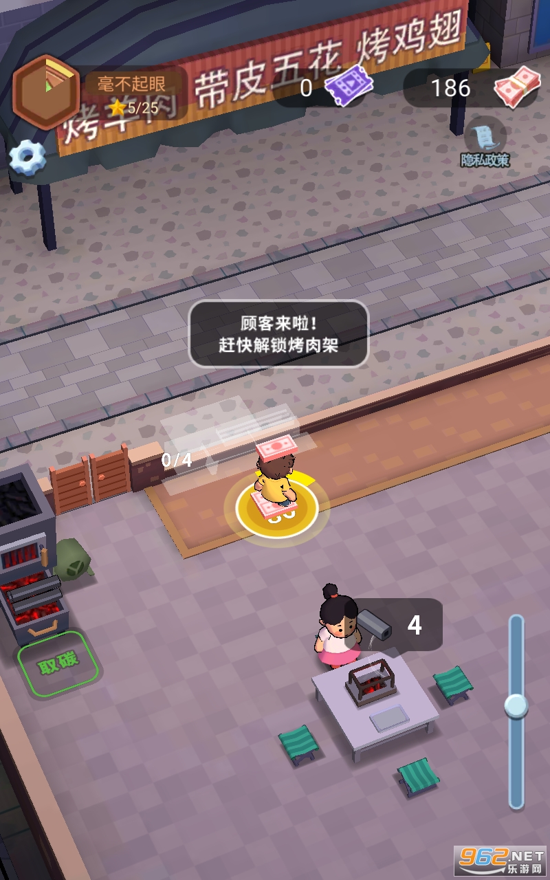 店铺规模逐步扩大。我从烧烤摊位游戏中赚钱。金币可以兑换红包。