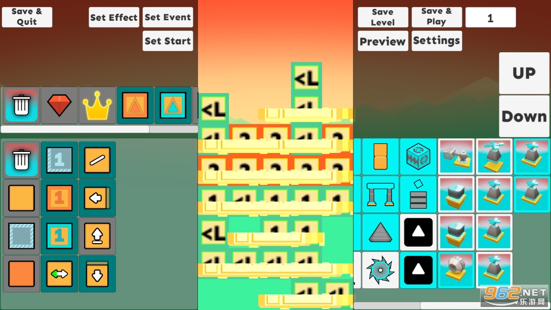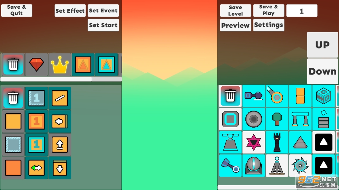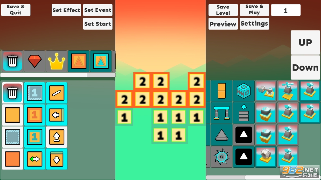 3、当你的关卡铺设完毕之后,点击右上角的settings,会弹出一个设置栏;