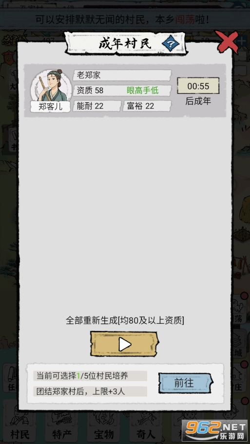 7、村民进京之后,都是把之前身上的装备带走的,我觉得不用卸下来,这些都是加能耐和富裕的,而且每次出门游历,村民都是会随机带装备回来的,带一件装备回来,我就一键赠送,能耐和富裕值一直会加的。