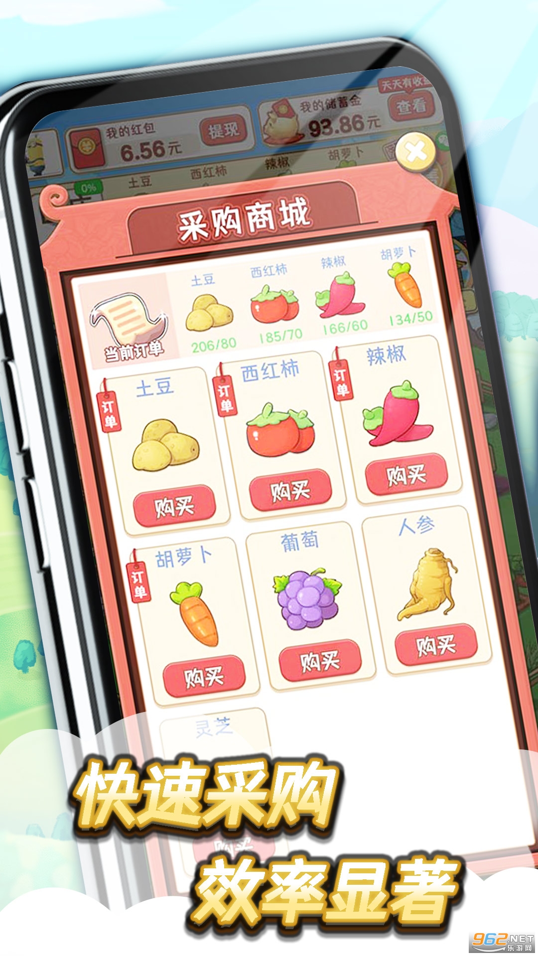 2、当您完成订单时,您可以获得相关的奖励。质量是卡通般的。完成任务可以解锁更多的种植道具。游戏玩法比较随意。