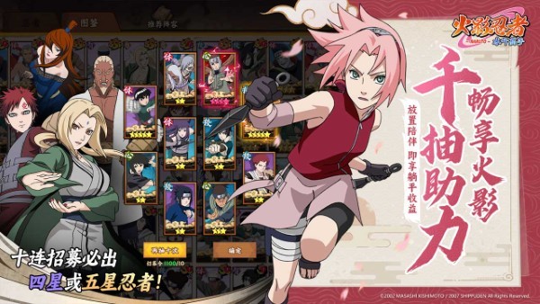 火影忍者木叶高手最新版是一个火影ip改编的卡牌放置对战游戏,将与你重温充满查克拉与忍术的火影世界,跟随原班声优再度邂逅鸣人、佐助、小樱、卡卡西等经典角色,沉浸式感受竖屏新视角带来的策略乐趣。忍者全集结,无损换将,让你轻松组建最强阵容,更有免费千抽助你躺平收益,在放置中感受成长乐趣。