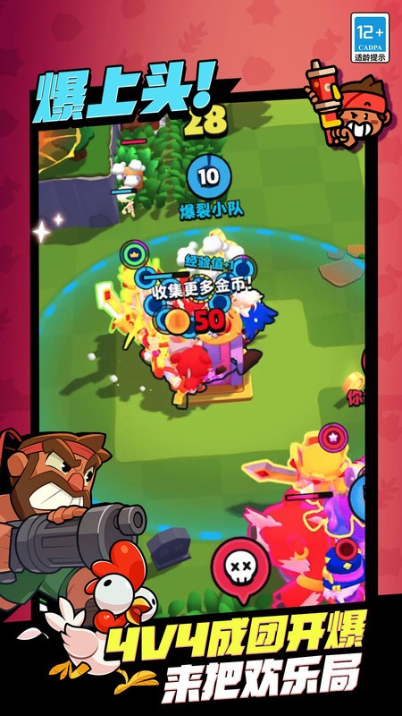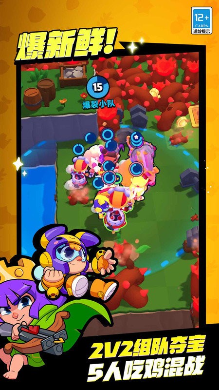 爆裂小队国服是全新的多人竞技类动作rpg游戏,该游戏由热门游戏厂商Supercell制作,国服则由腾讯代理发行,现有“小队模式”和“双人模式”两大模式,在小队模式下,玩家将组建小队与与其余九个小队竞争,狩猎怪物和收集最多的宝石的队伍获胜。而在双人模式下,玩家可以与好友或系统匹配的玩家对抗对抗其它三个队伍,最后收集到最多宝石的队伍获胜。游戏内提供了125个英雄供玩家选择,而且这些角色均来自该厂商旗下的游戏,如《部落冲突》、《海岛奇兵》、《皇室战争》、《荒野乱斗》等,玩家将在这里操纵自己喜欢的角色与其他玩家组队参与3v3或5v5的激烈对战。另外,爆裂小队游戏采用了经典的横版操作,屏幕左边控制上下左右,右边则为攻击,以及技能键位,玩起来十分简单易上手。