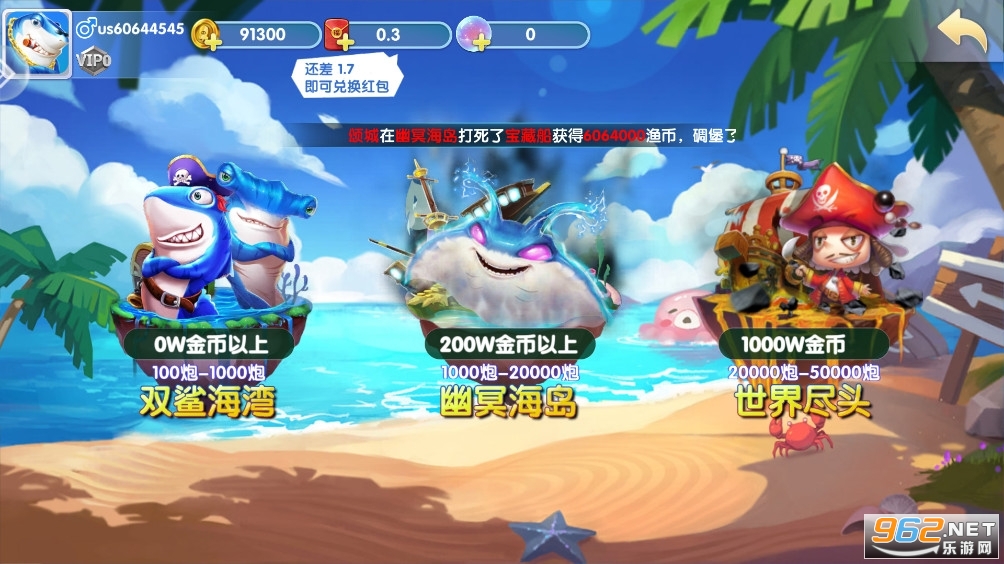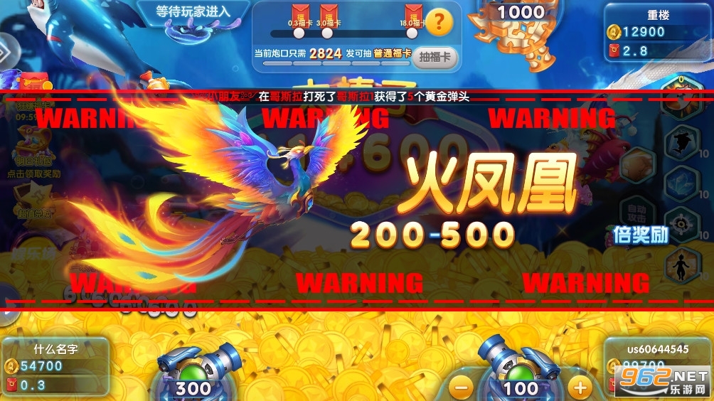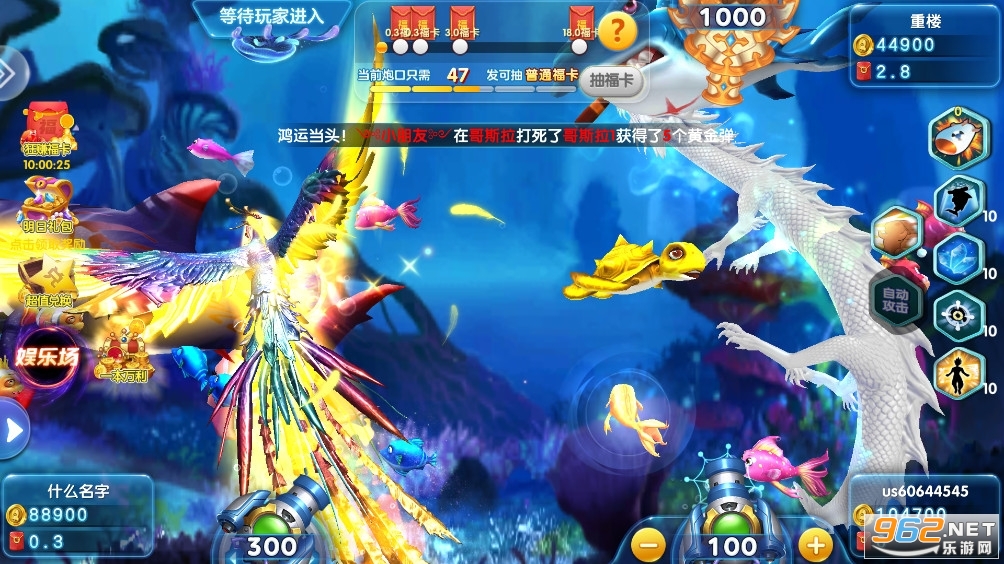 万人同时在线,四人同屏捕鱼,一起挑战大boss!黄金龙王、远古冰龙、神兽朱雀,让你做个真正的捕鱼达人!