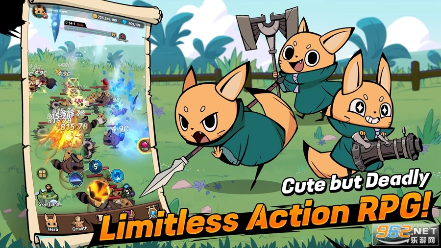《有尾的恶魔杀手崛起国际服(TDS:RISE)》(Tailed Demon Slayer : RISE)是一款Q版画风的竖版放置战斗类RPG手游,游戏中玩家可以解锁各种英雄去战斗,可以学习强力的技能,使用各种武器去战斗,收集各种资源来培养角色,去挑战强大的敌人。