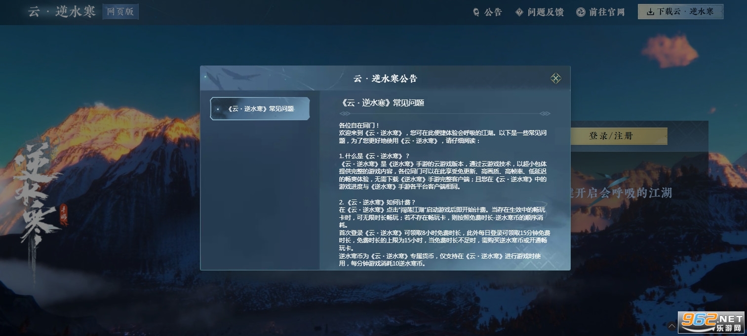 《云&12539;逆水寒》是网易旗舰级武侠游戏《逆水寒》手游的云游戏版本,通过云游戏技术,以超小包体形式提供游戏内容,玩家可享受到免更新、低延迟、高画质、高帧率的畅爽体验。目前版本中,将率先支持玩家“云”体验逆水寒手游中的庄园玩法。6月30日,云&12539;逆水寒将推出可畅玩全部游戏内容的完整版本。