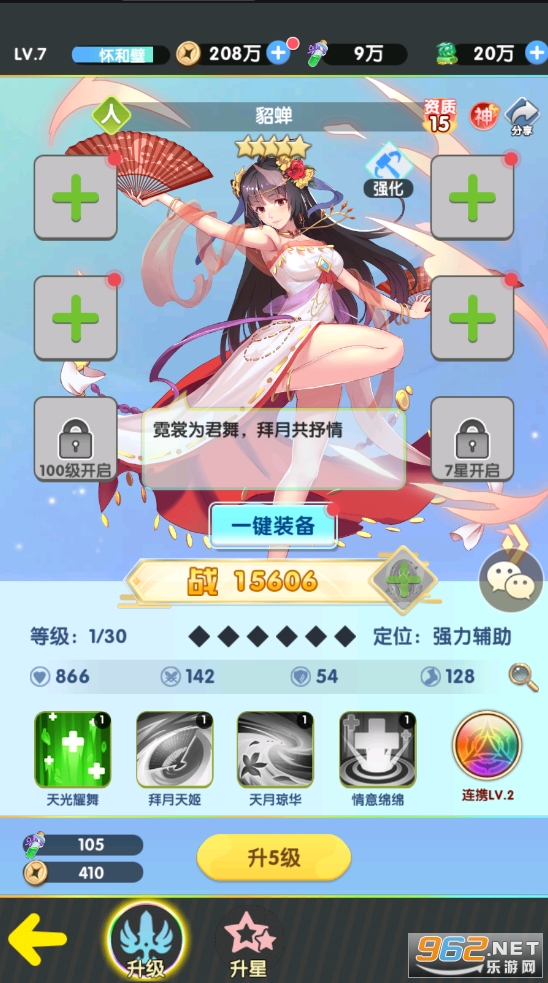 1、精美的形象,给你无限的战斗可能,上百名历史著名武将等你召唤,收集各种宝石强化自己实力;