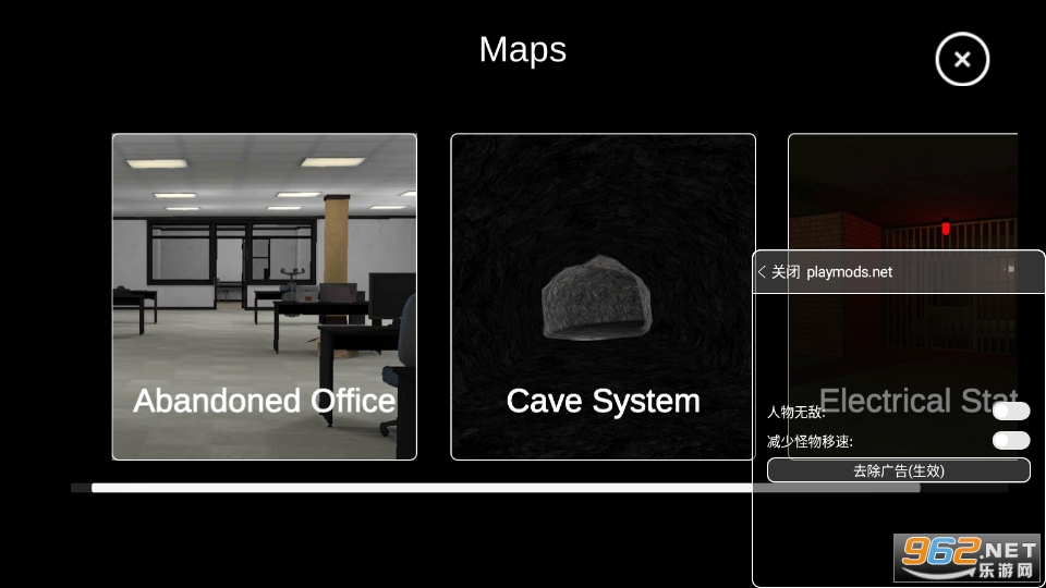 ②【地图】在三个地图中选一个地图开始游戏,分别是“废弃办公室”“洞穴”以及“发电站”