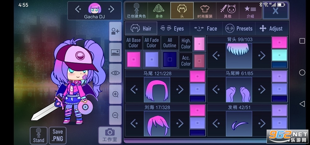 4、调整头发/眼睛/项目以适合您的角色!