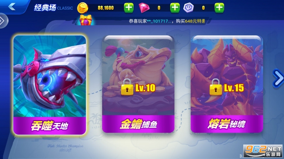 *新开放渔场内的倍率选择,多种倍率与多级武器自由组合,满足玩家多样的捕鱼策略。