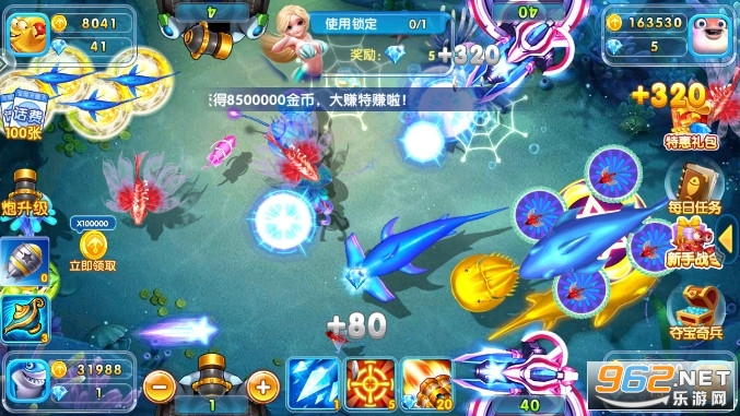 炫酷的武器系统:玩家可以通过游戏获得各种各样的武器,包括鱼雷、激光、导弹等,这些武器可以让玩家在捕鱼时获得更高的捕获倍率。