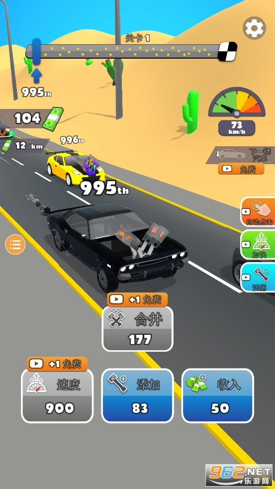 3、玩家需要添加活塞并进行合并,让活塞速度更快。通过升级汽车和发动机活塞获取更多钻石、金、银和青铜等奖励。在比赛中取得胜利,