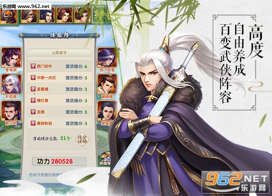 李寻欢、陆小凤、傅红雪、楚留香等各路几百名侠客,齐聚武林任你招募,自由搭配,强强联合!集齐特定侠客组合,更能达成独特合璧效果,战中释放超强合璧招式。掌门更可与众侠客同时上阵,获取侠客内力传功,释放独创掌门绝学。