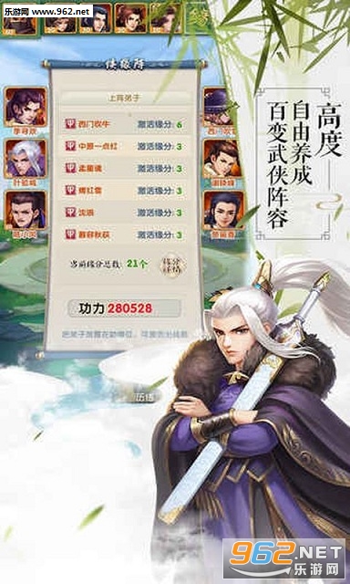 《大掌门2官方正版》是一款画风十分唯美的武侠风角色扮演卡牌游戏,游戏中玩家将化身成为一代掌门,开山立派,招募江湖豪杰英雄一起行侠仗义,惩奸除恶,匡扶武林。游戏的场景偏向于中国古代武侠小说的剧情,画风唯美,人物精致细腻。喜欢这款游戏的朋友不妨下载试试!