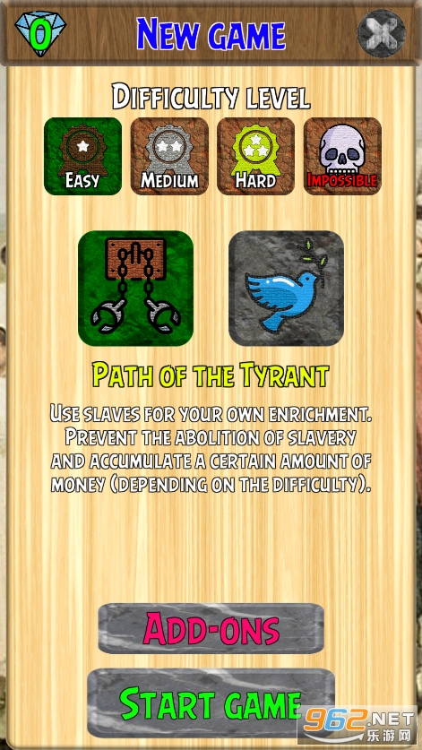 在奴隶主模拟器的开头选择两个目标之一:暴君之路或解放者之路。成为富有的奴隶主或实现废除奴隶制。一切都掌握在你手中。