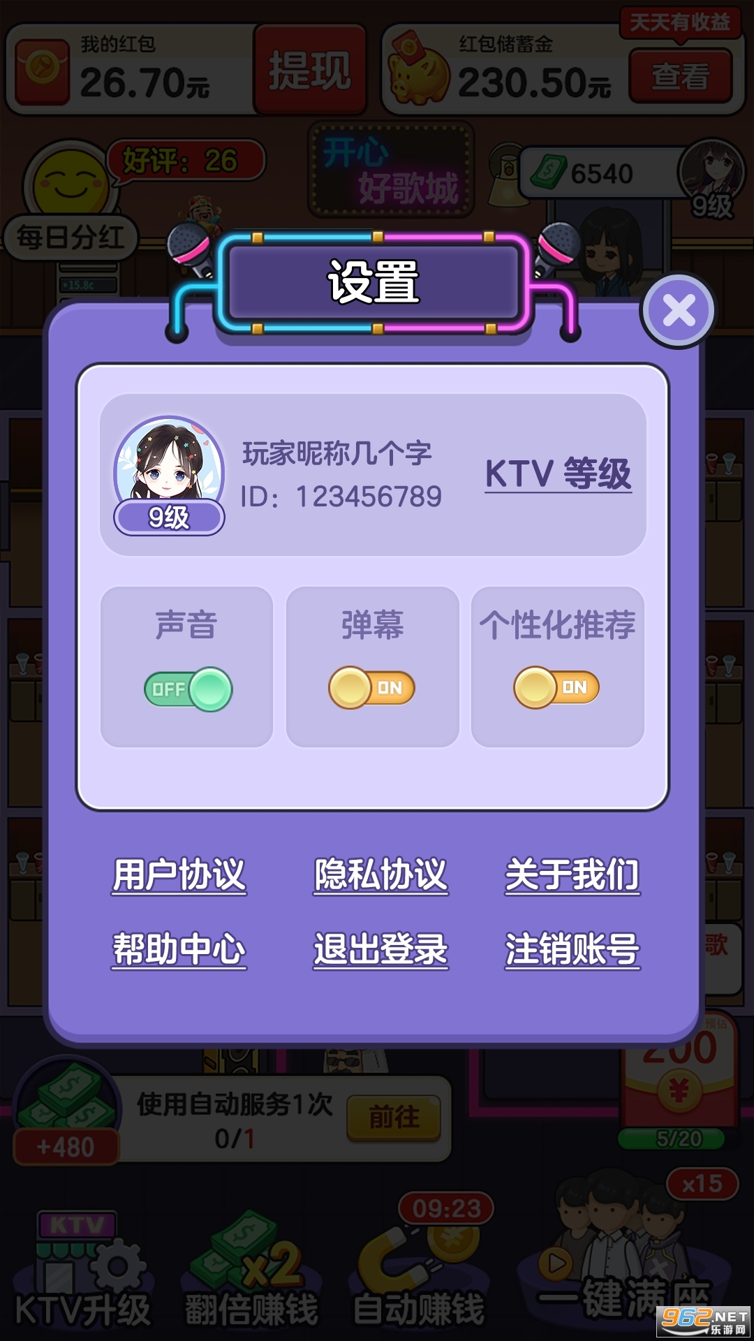 在这款经营类KTV模拟游戏中,玩家可以经营自己的KTV,通过K歌赚钱,并升级KTV设施以解锁红包福利。玩家需要招揽客人、接待订单,并完成各项任务以赚取丰厚福利。同时,玩家还可以领取每日红包和其他福利,享受经营KTV的乐趣。