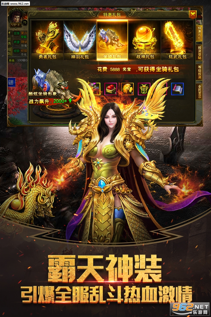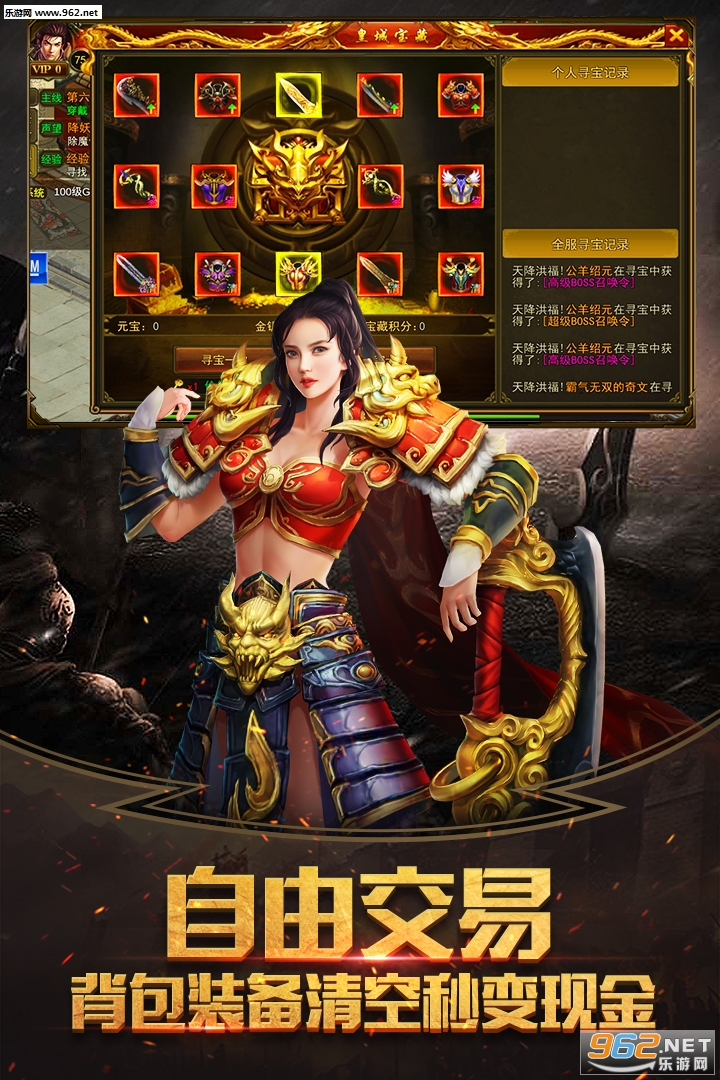1、正版授权,玩的放心,元宝送的开心,开局V10,极速升级不再等待;