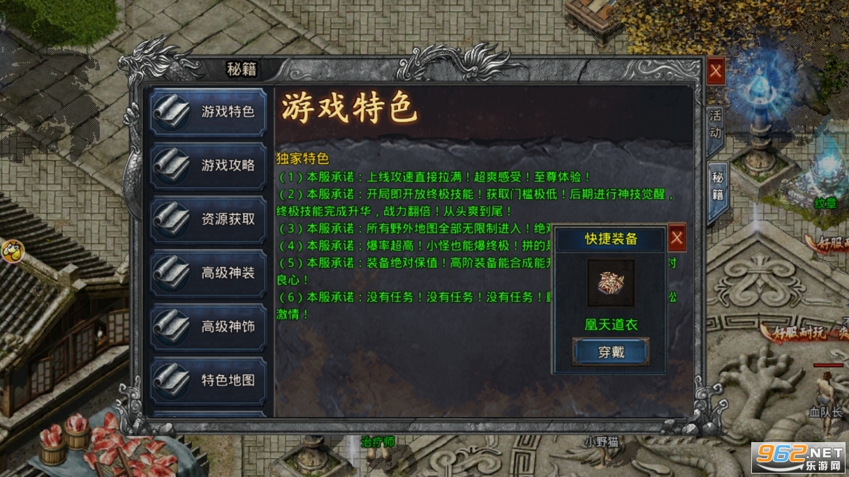 2、经典传奇游戏,壮观画面,丰富玩法,免费在线pk,激情对决,酣畅淋漓;