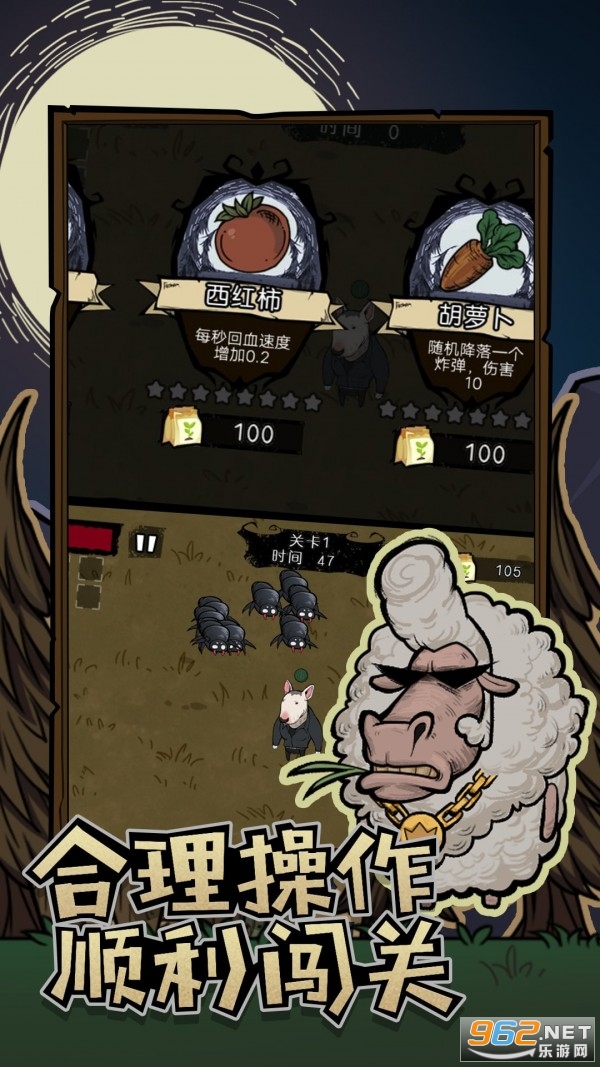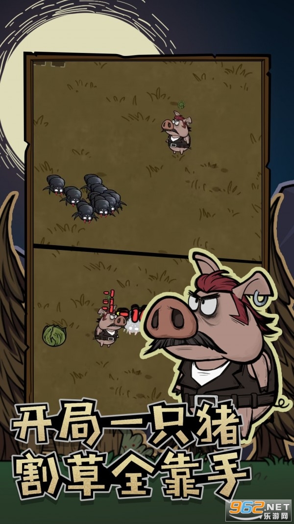 平静的农场每当在夜幕降临时,会出现一些强而有力的怪物来袭,需要玩家在割草动物联盟游戏中不断击退来犯农场的怪物,获取罕见的饲料来提升自身能力值或兑换强而有力的武器保护自己。