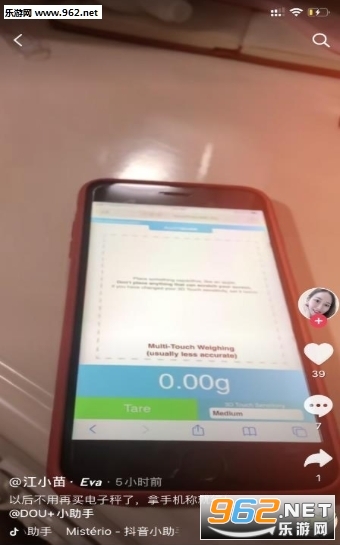 趣味的称重软件,在抖音上比较火,就是利用软件然后使用手机来为苹果等一些小东西称重,使用方法简单,直接进入网页即可开始使用,有需要的朋友可以下载试试。