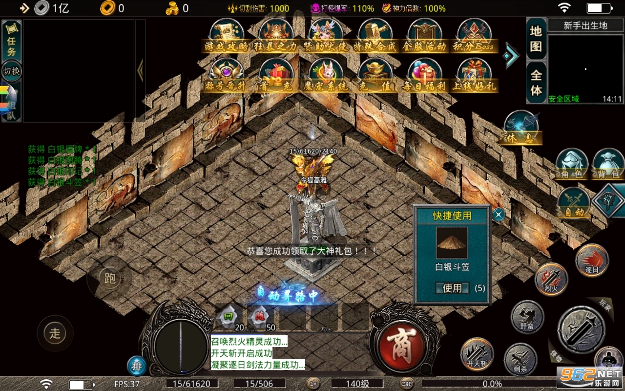 8、获得各种装备奖励来提高自己的能力,每一件装备都带有不同的属性,让你的角色更加强大。