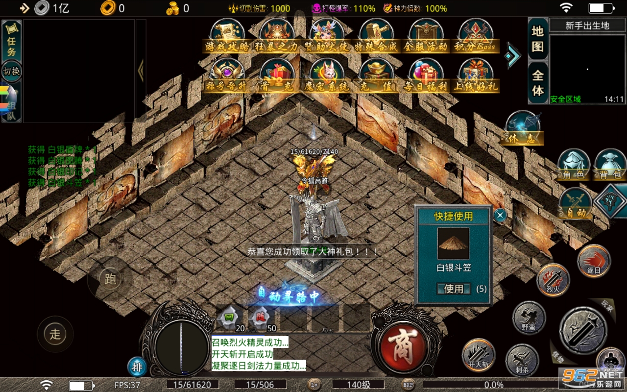 4.整体游戏的爆率很高,有机会获得极品装备,升级个人战斗力。