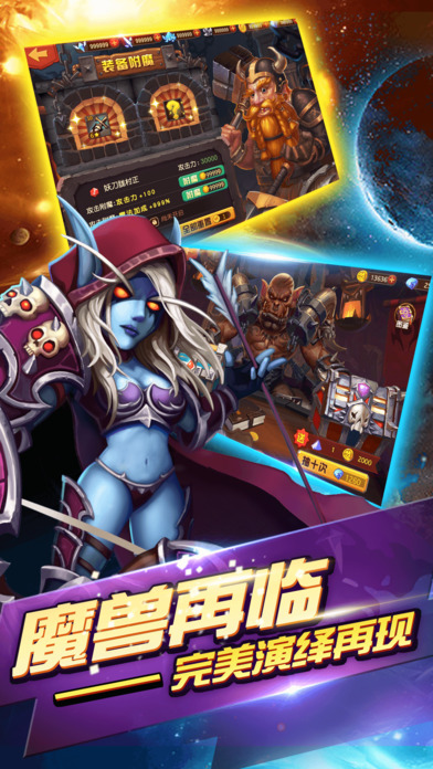 《艾泽拉斯传说》回归经典:搞笑的英雄吐槽,熟悉的魔兽段子,有喜欢卖萌的冰女,有逗比的恶魔猎手,有憨厚耿直的牛头人酋长,合力击溃萨格拉斯!永不暗淡的好友列表,才是我们一起玩的理由! 艾泽拉斯告急!部落与联盟联合奋战,共同抵御燃烧军团!