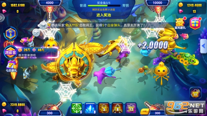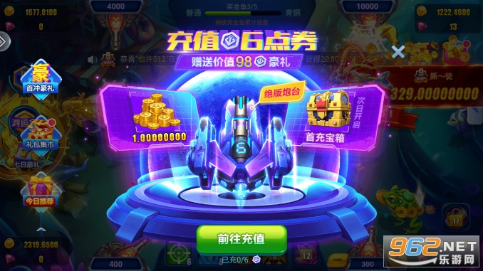 竞暴捕鱼赢话费正版乐游享受全新福利,每天登录就可以获得大礼包,不管是金币还是道具、弹头都有,爱玩捕鱼的朋友值得试一试,推荐的是竞暴捕鱼福利版本下载,玩家可以体验全新的街机捕鱼,整个游戏中的玩法都延续了经典电玩城,喜欢就加入!