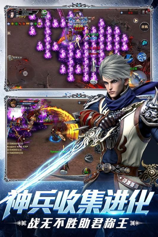 2、神兵收集,万人战场出击。