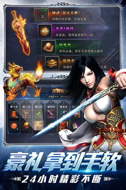 1、豪华大礼领不停,24小时战斗。