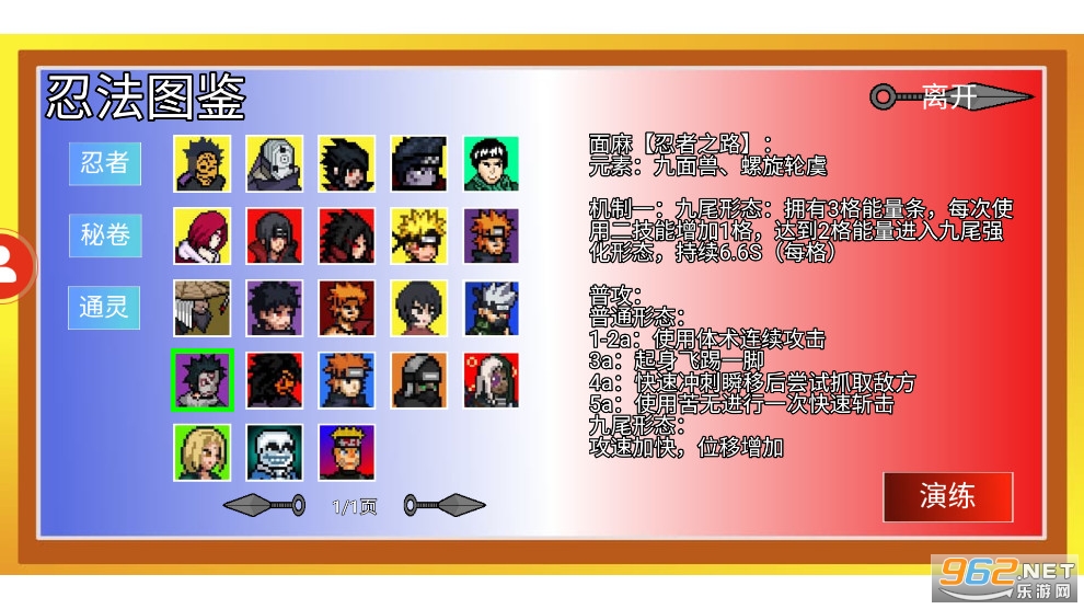 1、新增正式忍者:面麻【忍者之路】、宇智波带土【灭族之夜】,体验角色:暗部。