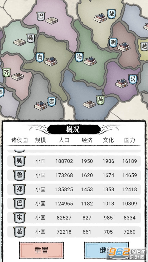 1. 选择流派 — 百家学派各有专长,对各方势力的影响程度也皆不同,你可以自由选择喜欢的流派开始管理,主张自己独特的信念。