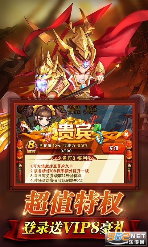 ★首充1:3000,首充即送红将林冲,全套紫装,还有280充值卡!超强战力助你乱世无双