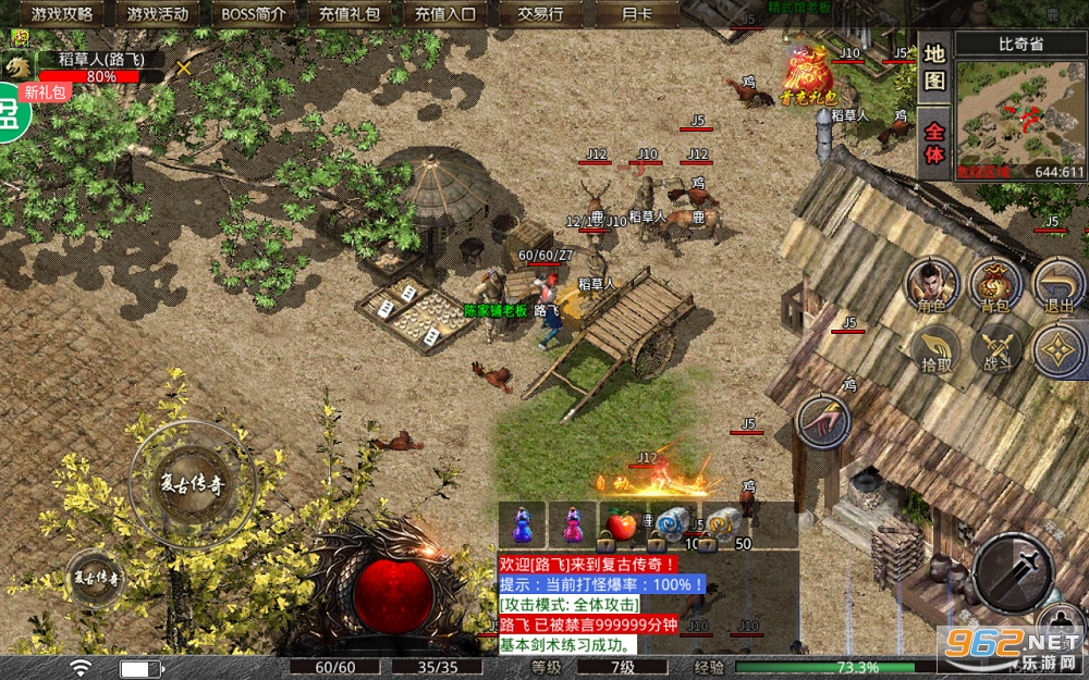 1、创角福利:上线送自动拾取+双倍经验宝典+幸运盲盒,无忧打金!