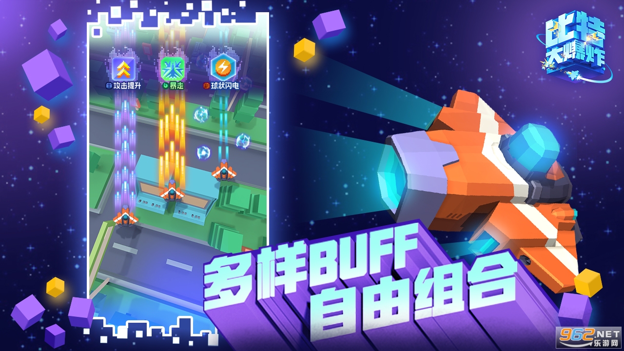 3.尽情输出连锁爆炸,感受满屏方块炸裂的快感,大量不同的飞机能使能让玩家肆意的进行体验。