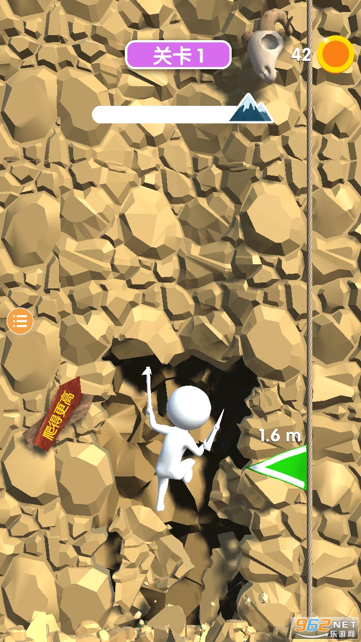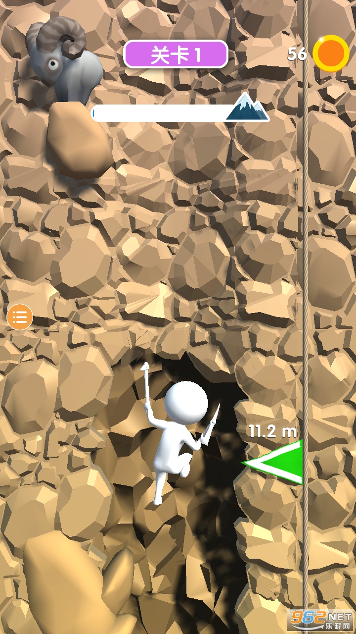 2、游戏目标简单,只需要成功到达山顶挑战要成功,玩家必须发射钩子并在山上移动。