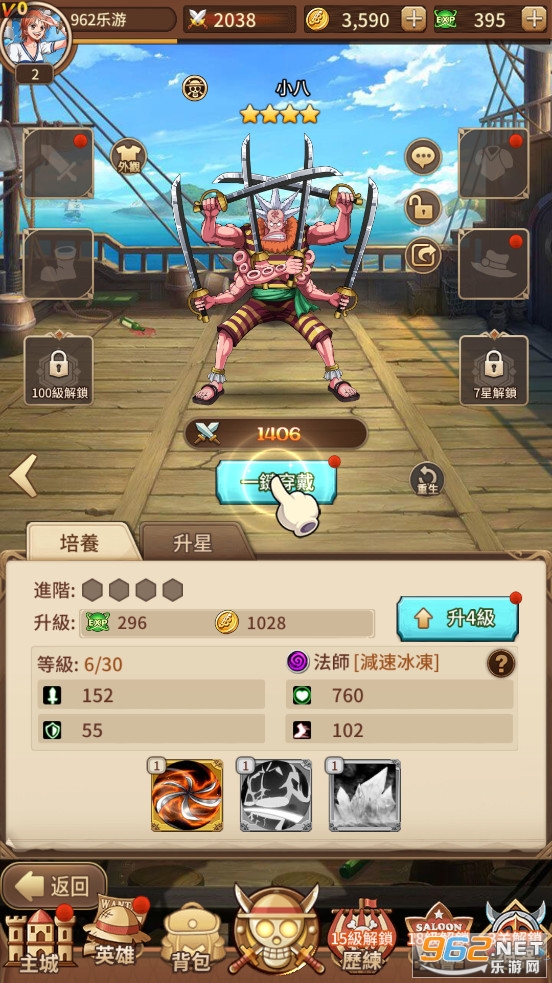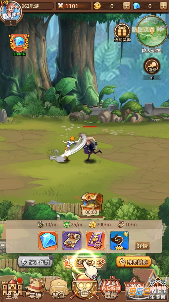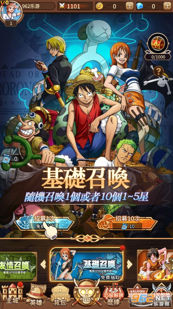 趣味的放置卡牌游戏,以热门动漫海贼王为题材,加入了大量熟悉的海贼王人物,玩家可以自由搭配各种人物卡牌来组成队伍,有着丰富的玩法可以体验,喜欢的朋友可以下载试试。