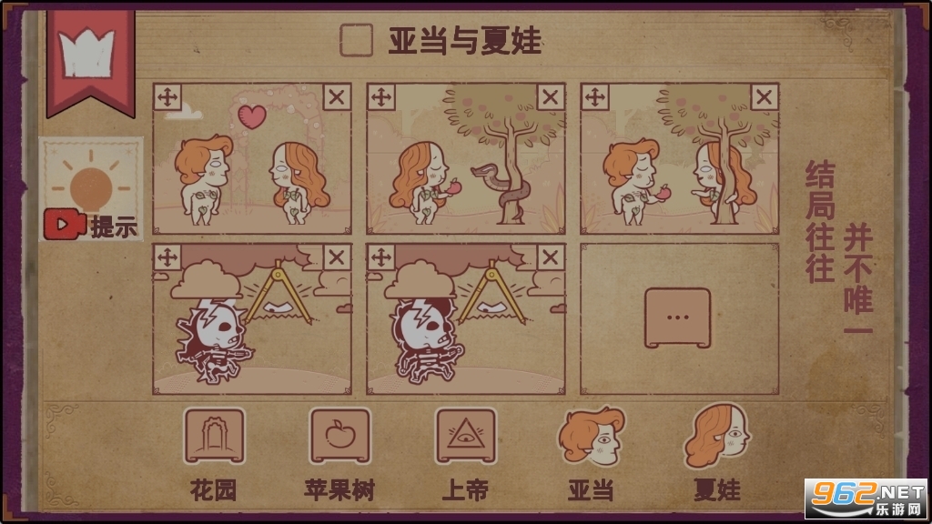 《Storyteller》是来自阿根廷的独立游戏开发者 Daniel Benmergui 的最新作品,游戏本身的美术呈现就像是一本童话故事,依照标题的叙述,玩家可以自由利用下方的人物及场景素材搭建一则故事,只要符合标题即可通关。