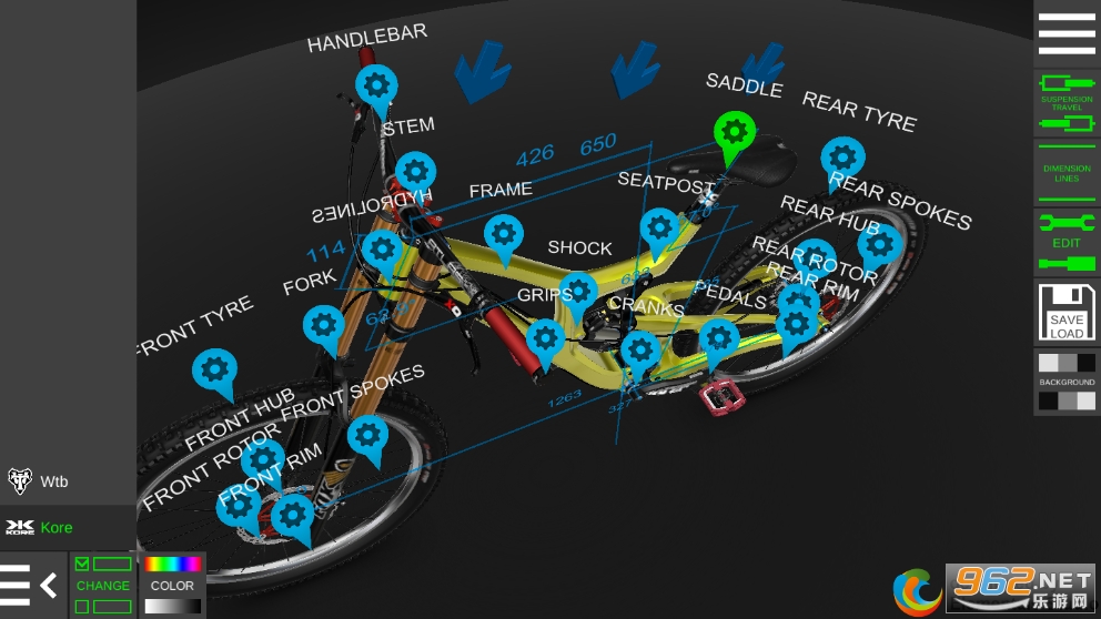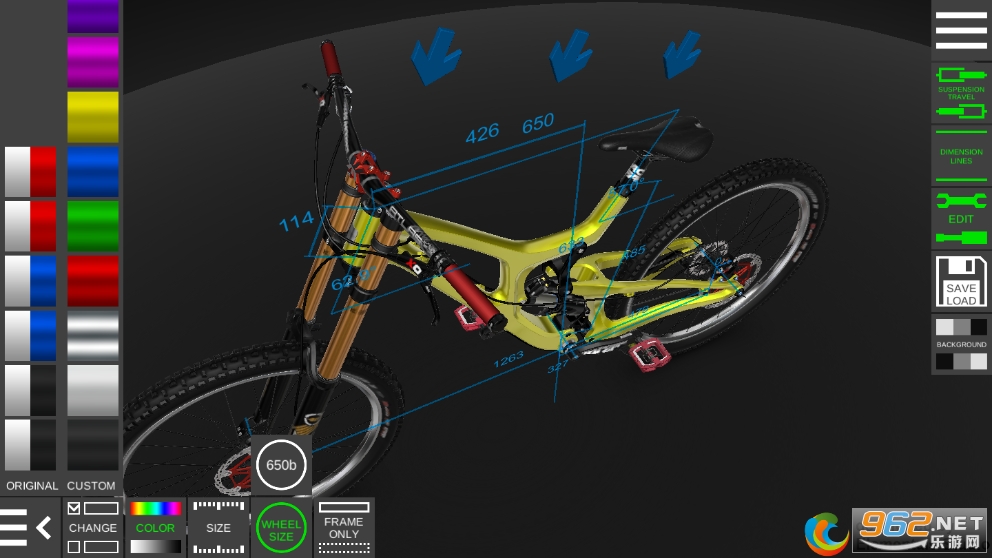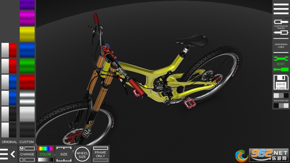 更改颜色、车架尺寸、前叉行程、车轮尺寸