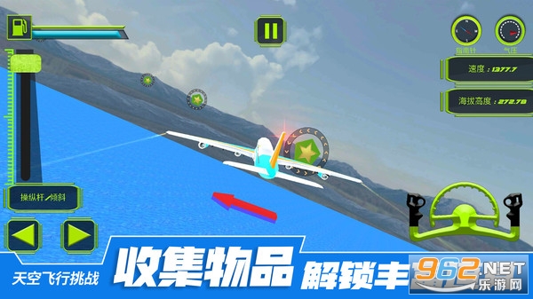 《天空飞行挑战》是一款模拟飞行驾驶的游戏,驾驶小型飞机穿越海洋的上空,翱翔天际,收集各种物品,来解锁丰富的道具,来体验精彩的模拟飞行吧。