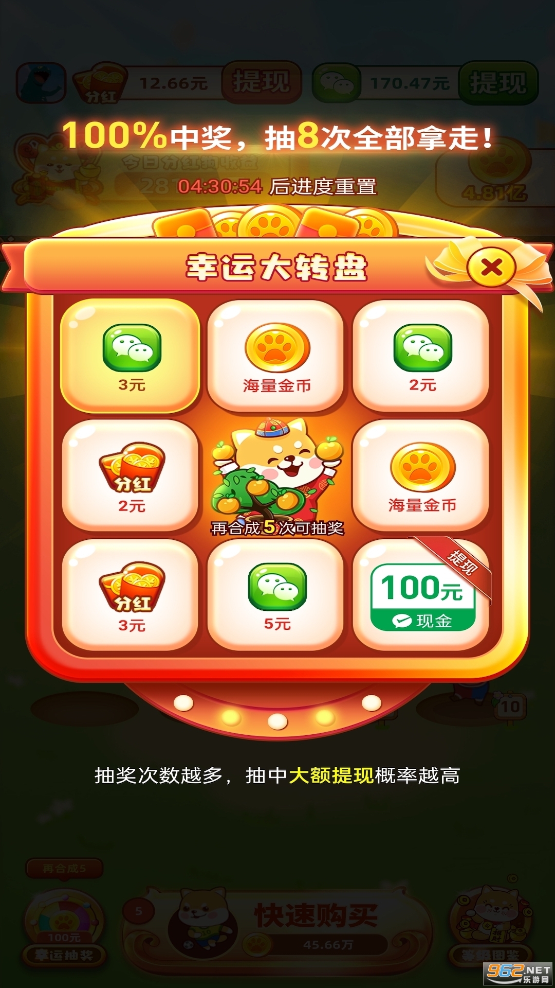 可直接提0.3元,之后满5元即可提,这也是首款低门槛养成类合成游戏。