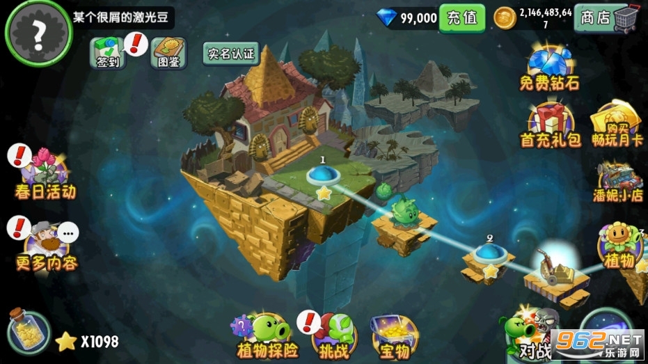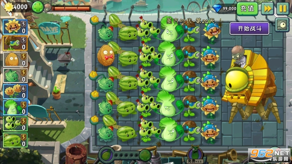 3、自由搭配数十种植物,把植物种在花园的不同地方,对抗僵尸王还是需要战斗力彪悍的植物。